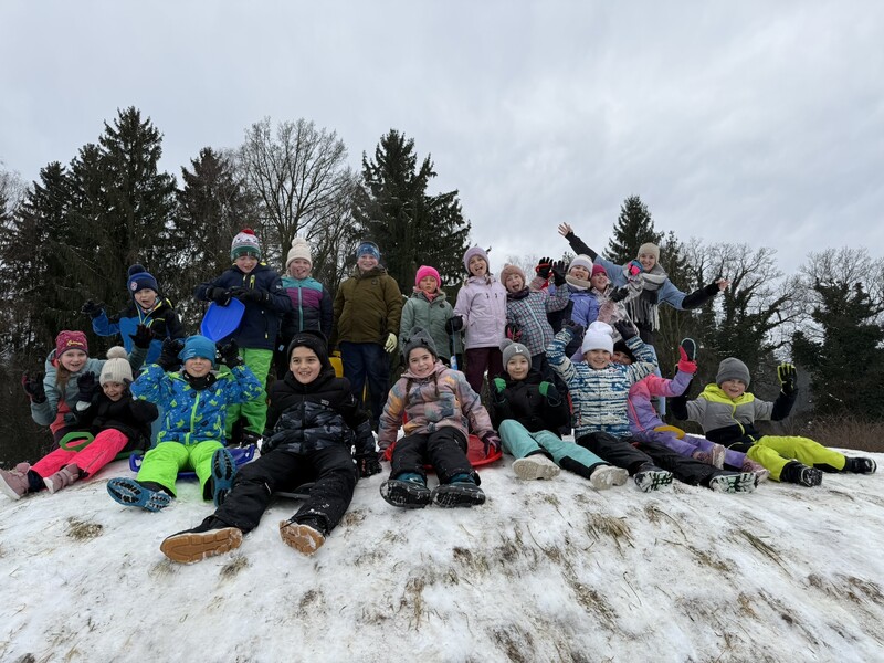 Der viele Schnee und das super Wetter wurde von den Kinder der 2b ausgenutzt. Sie waren am Freitag in der Turnstunde Bobfahren.