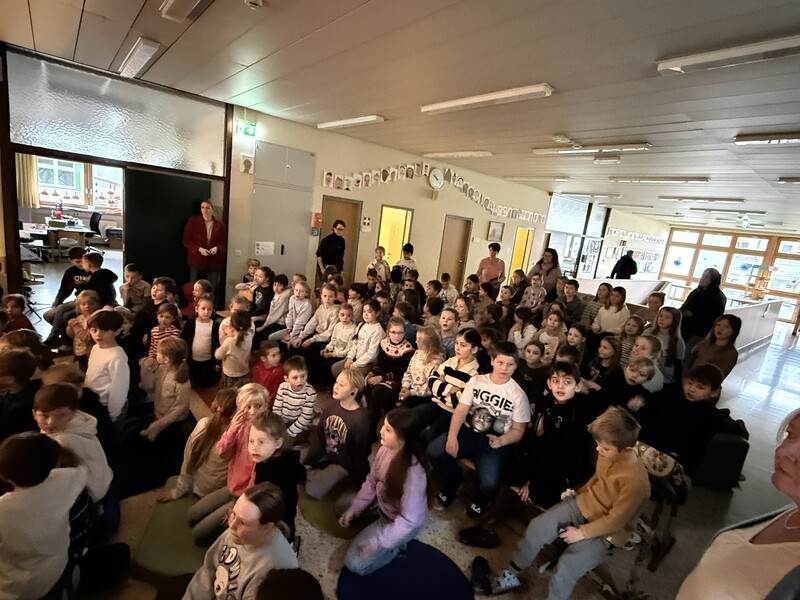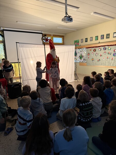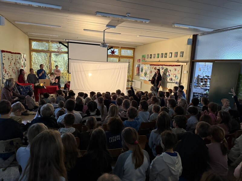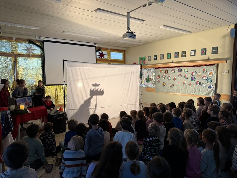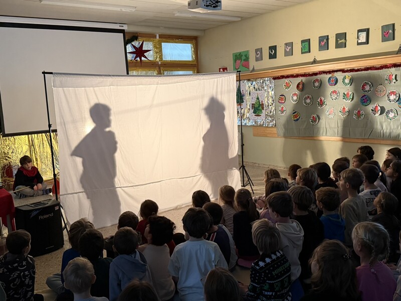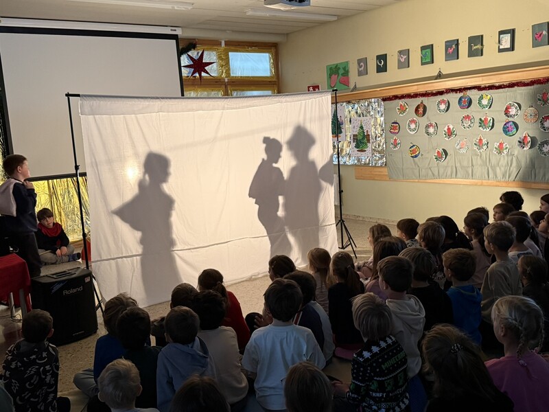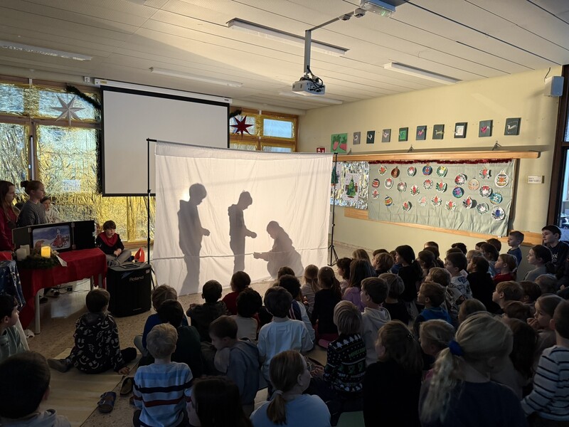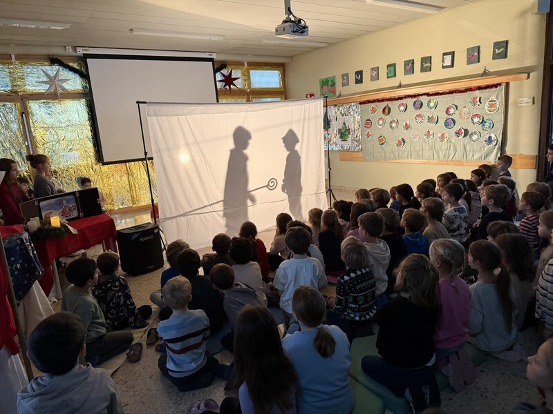 Die Klasse 3b bereitete ihm ein wunderbares Schattentheater vor, das mit viel Kreativität und Begeisterung aufgeführt wurde. Anschließend wurden gemeinsam stimmungsvolle Lieder gesungen, die perfekt zur Adventzeit passten.