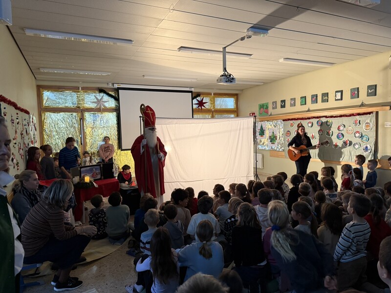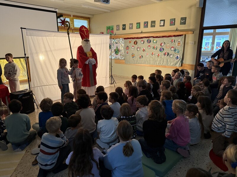 Schon seit Montag lag eine feierliche und gespannte Stimmung im Schulhaus. Es wurden Lieder geprobt, Adventbasteleien gemacht und die Kinder warteten voller Vorfreude auf den Besuch des Nikolaus.